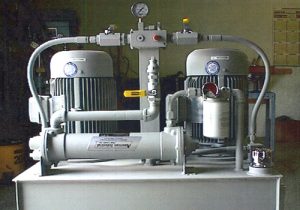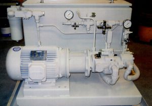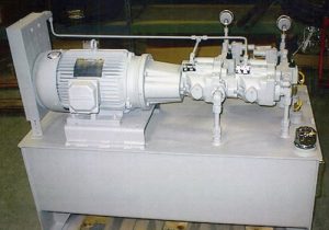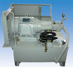 Typical units consist of a motor, pump, reservoir, filter, relief valve, sight gauge, and filler breather.